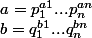 Ce sont les mêmes : p1 =2, p2 = 3, p3 = 5, ...., au besoin avec des puissances 0, avec des puissances pour a et d'autres (pas forcément les mêmes) pour b.