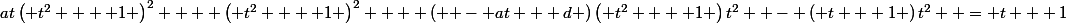 ^2 + \left( {t^2 + 1} \right)^2 + \left( { - at + d} \right)\left( {t^2 + 1} \right)t^2 - \left( {t + 1} \right)t^2 = t + 1)