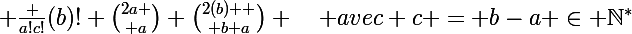!} {2a \choose a} {2(b) \choose b+a} \quad avec \ c = b-a \in \mathbb{N}^*)