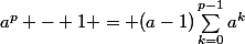 (a exposant p) - 1 = somme de k=0 à p-1 de [ (a-1) * (a exposant k)]