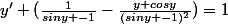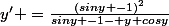 Ensuite tu fais à peu près la même chose pour le terme à droite de l'égalité. On fait la dérivé d'un produit en gardant en tête que la dérivée de UV est égale à U'V + V'U. Et sans oublier que la dériver de siny par rapport à x est égal à la dérivée de siny par rapport à y, multipliée par la dérivée de y par rapport à x.
