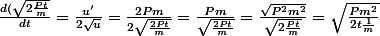 =\sqrt{\frac{2Pt}{m}}\frac{1}{2\sqrt{t}}=\sqrt{\frac{2Pt}{4mt}}=\sqrt{\frac{Pt}{2m}})