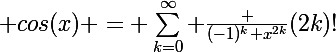 = \sum_{k=0}^{\infty} \frac {(-1)^k x^{2k}}{(2k)!})