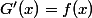 Alors si on applique la "formule" mot que j'aime pas employer, beh G'(x)=f(x)=0 Donc y'a un truc que j'ai vmt pas bigé !