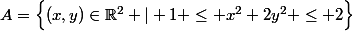 \in\mathbb{R}^{2} | 1 \le x^2+2y^2 \le 2\Big\})