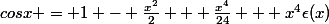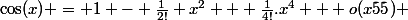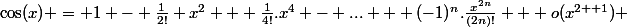 = 1 - \frac{1}{2!} x^{2} + \frac{1}{4!}.x^{4} + o(x^{5}) $)
