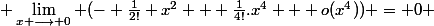 = \displaystyle \lim_{x \longrightarrow 0} 1 - \frac{1}{2!}.x^{2} + \frac{1}{4!}.x^{4} + o(x^{5}) = 1 \neq 0 $)