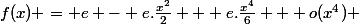 = e.(1+(-\frac{1}{2!}.x^{2} + \frac{1}{4!}.x^{4}) + \frac{(-\frac{1}{2!}.x^{2} + \frac{1}{4!}.x^{4})^{2}}{2} + \frac{(-\frac{1}{2!}.x^{2} + \frac{1}{4!}.x^{4})^{3}}{6} + \frac{(-\frac{1}{2!}.x^{2} + \frac{1}{4!}.x^{4})^{4}}{24} + o(x^{4})) $)