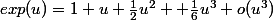 =1+u+\frac{1}{2}u^2++\frac{1}{6}u^3+o(u^3))