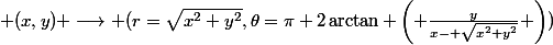 \longrightarrow (r=\sqrt{x^2+y^2},\theta=\pi+2\arctan \left( \frac{y}{x- \sqrt{x^2+y^2}} \right)))