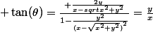 =\frac{ \frac{2y}{x-sqrt{x^2+y^2}}}{1-\frac{y^2}{{(x-\sqrt{x^2+y^2})}^2}}=\frac{y}{x})