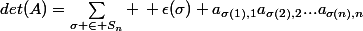 =\sum_{\sigma \in S_n} \, \epsilon(\sigma) a_{\sigma(1),1}a_{\sigma(2),2}...a_{\sigma(n),n})