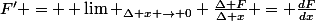 On montre facilement que le rapport dF/dx est simplement la dérivée de la fonction puisque :