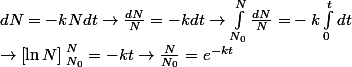 SI on considére un intervalle de temps très petit alors le nombre de déintégrations(= la variation du nombre d'atomes qui est négative) est proportionnel au nombre d'atomes.