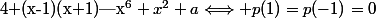 Le polynôme P(x)= x^6+x²+a ( a réel donné ) est divisible par le polynôme Q(x)=x²-1 lorsque a est égal a combien ?