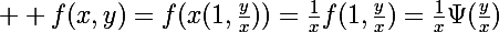 =f(x(1,\frac{y}{x}))=\frac{1}{x}f(1,\frac{y}{x})=\frac{1}{x}\Psi(\frac{y}{x}))