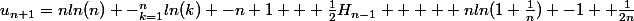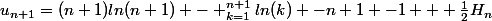 ln(n+1) - \bigsum_{k=1}^{n+1}ln(k) -n+1 -1 + \frac{1}{2}H_n)