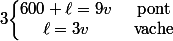 1/ Un TGV défile devant une vache en 3 secondes, et met 9 secondes pour traverser complètement un pont de 600 mètres.