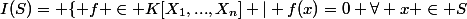 T'es sûr que la topologie de Zariski ça serait pas une topologie sur l'ensemble des idéaux plutôt que sur les parties de K^n ?zork a écrit:imaginons que je veuille calculer l'adhérence de C pour la topologie de Zariski. Suis je obligé de calculer I(C) ou bien il y a une astuce?
