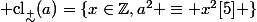 =\{x\in\mathbb{Z},\ a^2 \equiv x^2\ [5] \})