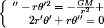 Il n'y a pas d'exercice, je réfléchissais sur le mouvement d'un satellite en orbite et je tombe sur cette équa diff, je pense que (si je ne me suis pas trompé) tu peux la retrouver, j'ai utilisé les coordonnées polaires, le satellite se déplace à une vitesse initiale et "subit instantanément" à t=0 la force gravitationnelle d'une planète à proximité. L'accélération est suivant moins le vecteur unitaire -u_r et vaut +-GM/r² ce qui me donne une première equa diff car égal à l'expression de a_r dans les coordonnées polaires, par ailleurs a_teta vaut 0 et est égal à l'expression de a_teta en polaires. J'ai donc maintenant un système de 2 équa diff qui une fois substitué (il me reste que des r) donne l'expression du premier post.