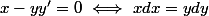la méthode générale pour ommencer ce type d'équations différentielles (dites à variables séparables) est... de séparer les variables. Les x d'un côté et les y de l'autre.