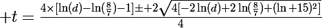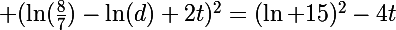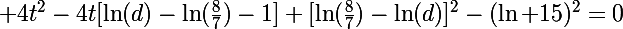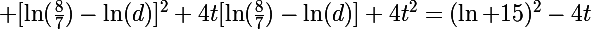 -\ln(d)]^2+4t[\ln(\frac{8}{7})-\ln(d)]+4t^2=(\ln 15)^2-4t)