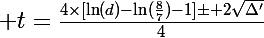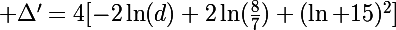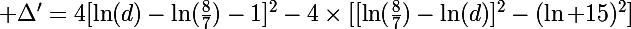 -\ln(\frac{8}{7})-1]^2-4\times[[\ln(\frac{8}{7})-\ln(d)]^2-(\ln 15)^2])