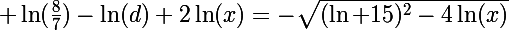 -\ln(\frac{8}{7})-1]+[\ln(\frac{8}{7})-\ln(d)]^2-(\ln 15)^2=0)
