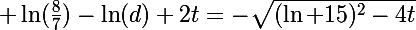 -\ln(d)+2t=-\sqrt{(\ln 15)^2-4t})