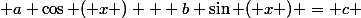 + b \sin (x) = \sqrt{a^{2}+b^{2}} \Big( \cos ( \alpha_0 ) \cos ( x) + \sin( \alpha_{0} ) \sin (x) \Big) = \sqrt{a^{2}+b^{2}} \cos ( x - \alpha_{0} ) $)