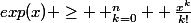 \geq \bigsum_{k=0}^{n} \frac{x^k}{k!})