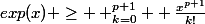 \geq \bigsum_{k=0}^{p+1} \frac{x^k}{k!})