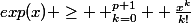 \geq \bigsum_{k=0}^{p+1} \frac{x^{p+1}}{k!})