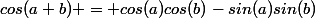 1. Rappeler la formule cos (a+b).[/FONT]