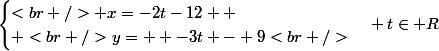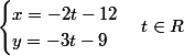 La droite que tu cherche à évidement comme équations paramétrique x=-2t-1 ; y=-3t-17 et donc comme équation cartésienne (x+1)/(-2)=(y+17)/(-3) [=t].