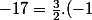 + h\Longleftrightarrow -17 =-\frac{3}{2} + h \Longleftrightarrow -h =-\frac{3}{2} + 17\Longleftrightarrow -h = -\frac{3}{2} +\frac{34}{2} \Longleftrightarrow -h =\frac{31}{2})