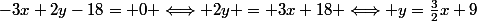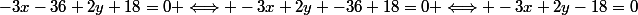 -(-2(y+9))=0 \Longleftrightarrow -3x -36 -(-2y-18)=0 \Longleftrightarrow)