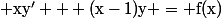J'aurais tendance à dire qu'une solution part serait de la forme , puisqu'on multiplie y par x ds le 2ème terme du 1er membre, dc