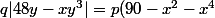 P(x^4+x^2-90) + q.va(48y x.y^3) = 0 où va désigne la valeur absolue. Les variables x et y sont dans N. (En tout 4 variables)