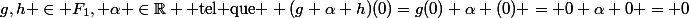 , ce que tu ecris apres ton "tel que" n'est pas une hypothese mais au contraire ce que tu veux montrer, pour que la phrase soit correcte il faudrait le remplacer par "Soit ..., alors (g+\alpha h)(0) =... = 0, donc g + \alpha h\in\ F_1".