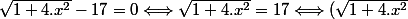 ^{2} = 17^{2} \Longleftrightarrow 1+4.x^{2} = 17^{2} = ... etc $)