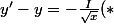 : (C'(x)e^x+C(x)e^x) - C(x)e^x = C'(x)e^x= - \frac{I}{\sqrt{x}})