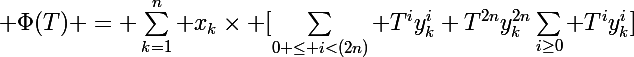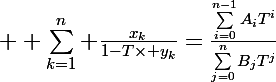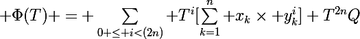 En identifiant les 2n premiers coefficients, pour i=0 à 2n-1, respectivement des monômes de degré i de part et d'autre du signe "=", j'obtiens (2n) équations linéaires avec les 2n inconnues, i=1 à n, et