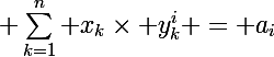 Quidam a écrit:Oui, tu as raison, ya un truc qui cloche ! Au départ, on a 2n équations et 2n inconnues. Le problème est qu'à présent on a 2n+1 inconnues : les, pour i=0 à n-1 et les