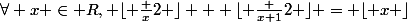De la m^me inégalité, tu tires que [x]/2=<x/2 =<x/2+1/2<[x]/2+1/2+1/2=[x]/2+1 tu as donc [(x+1)/2]=[x]/2