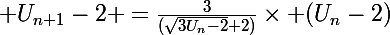et j'ai trouvé que son signe dépend du signe de -(Un-1)(Un-2) donc on est ramené à distingué les cas Uo>1 Uo>2 Uo$]1,2[ .or cette distincton est dans la 2emme question.