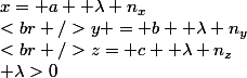 Dans ce cylindre,on prend une point A de coordonnée A(a,b,c).A ce point est appliqué un vecteur de coordonnée unitaire (nx,ny,nz). Ce vecteur vient pointer sur la surface bombée du cylindre.