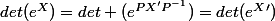 =det (e^{PX'P^{-1}})=det(e^X'))