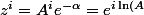 } e^{-\alpha} = e^{-\alpha}\cos(\ln(A))+e^{-\alpha}\sin(\ln(A)) i)